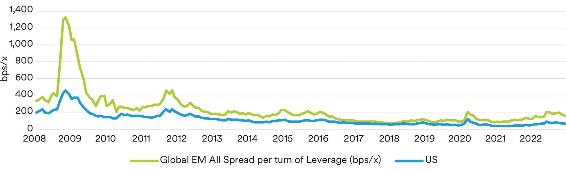 Figure 5 | Historical Spread per Turn of Leverage (bps/x)