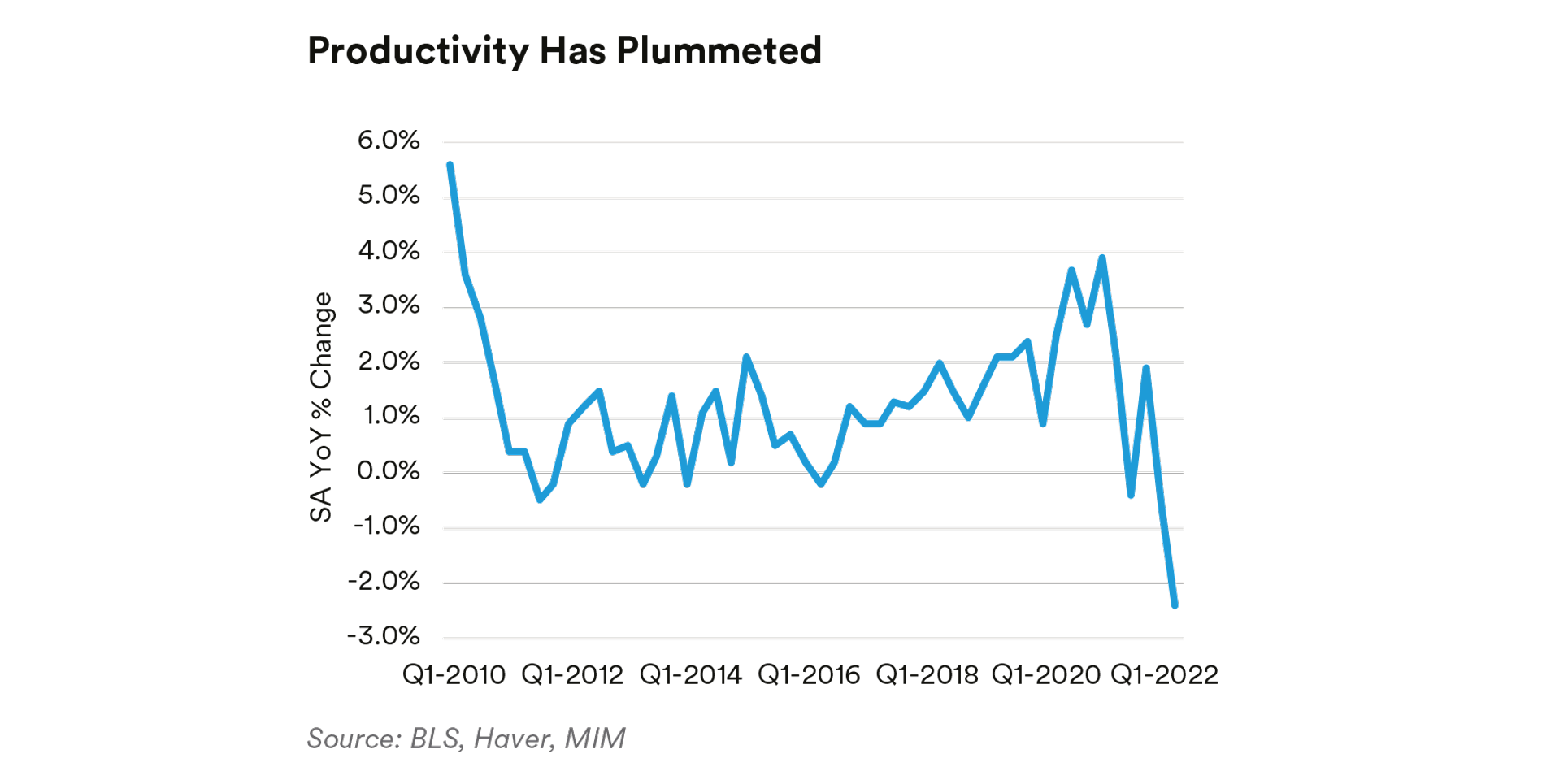 Labor Market Activity. Companies laid off a huge number of workers during the pandemic. Labor productivity rose to the highest level since 2010 as only the most critical workers were kept on. The rebound in consumer spending after the initial pandemic response, combined with the large decline in the labor force, left many companies flatfooted and scrambling to hire throughout 2021 and into 2022. Now, productivity plummeted to its lowest recorded levels, meaning there are doubts about how much more hiring is sensible in the current economy. Companies may have once again overreacted by hiring too many people relative to the economy’s optimal output. Labor productivity is about one percentage point below its pre-COVID-19 trend, or about one year behind where it “ought” to be. This may right itself as businesses respond to relatively expensive labor costs, or we could be in a period of weaker productivity growth as the economy recalibrates to a world with hybrid work, more resilient supply chains, and increased geopolitical and environmental uncertainty. Corporate Profits. Corporate profits declined for a few quarters as a share of GDP, leading many to posit that we were rapidly approaching a recession. This was accompanied by doubts that firms would be able to pass on their rising costs to consumers. In that context, the corporate profit-to-GDP in Q2 2022 was something of a surprise, rising as it did to 12.2%. We regard this measure as a leading indicator for layoffs: corporate profit margins tend to decline toward the end of a business cycle. Once margin compression becomes too painful, companies begin to lay off workers. Although Q4 2021 and Q1 2022 saw a sharp decline in margins, indicating that layoffs could be on the horizon, the uptick in margins for Q2 implies a temporary forestalling of potential layoffs. The relatively strong profits may leave corporations flush enough to continue hiring people in the current quarter (Q3), despite the fall-off in productivity. The longer-term narrative remains uncertain, adding to the overall volatility.  loading=