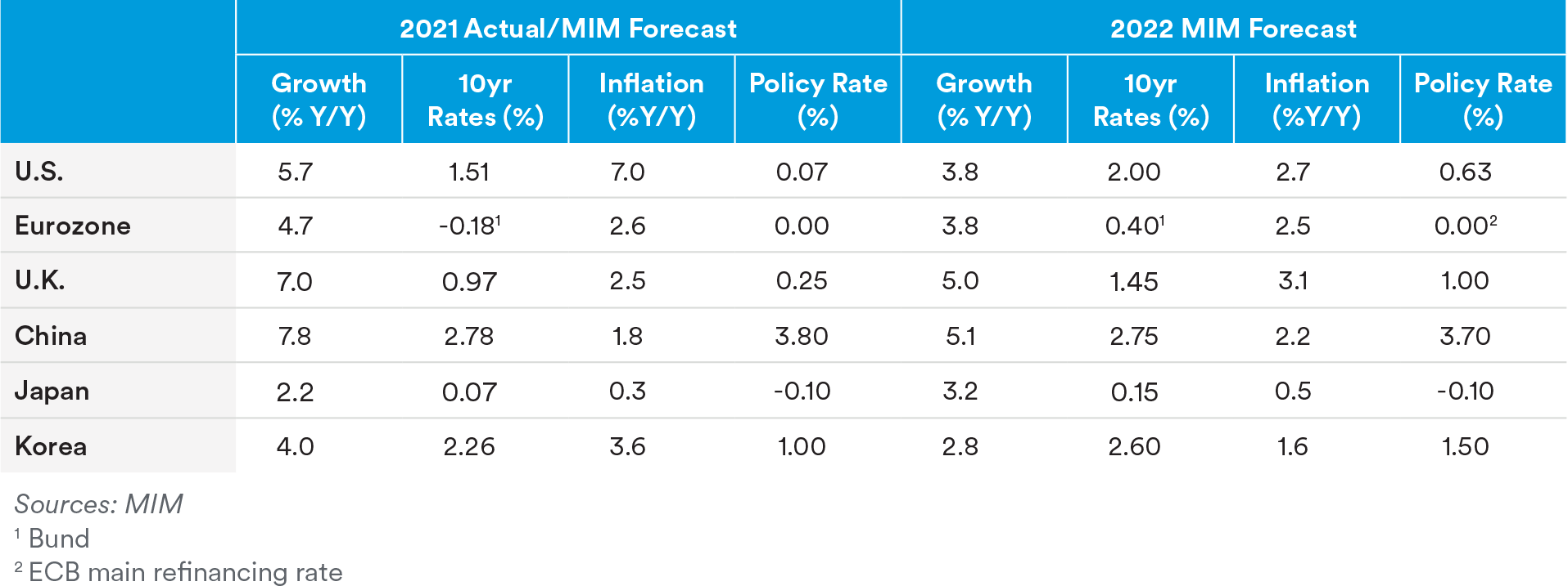 We expect growth for 2022 to be quite strong for most countries, although growth will pale in comparison with 2021. The recovery process is likely to produce growth rates that are substantially stronger than historical growth rates for most countries.