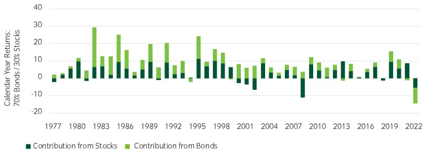 Figure 2: Calendar year 2022 was truly an outlier for investment returns3