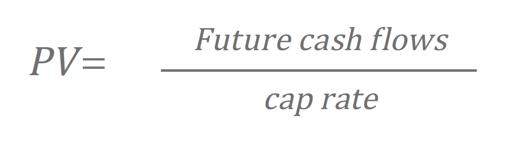 Where the cap rate is the difference between the discount rate and the growth rate.