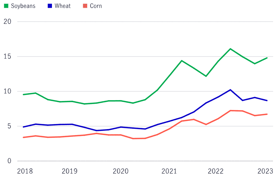 The relatively consistent crop yield growth of the past two decades is evidence of this continuous innovation and due partly to the application of improved genetics and the development of drought-tolerant varieties, along with the increased implementation of